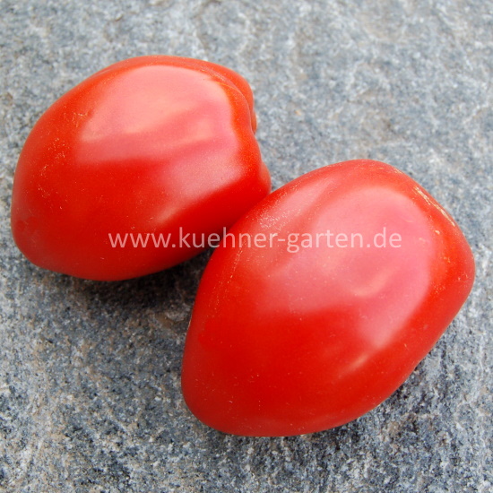 Früchte: rot; in Form einer prallen Pflaume, teils mit Rillen oder herzähnlich; süß, aromatisch, wohlschmeckend, fleischig
