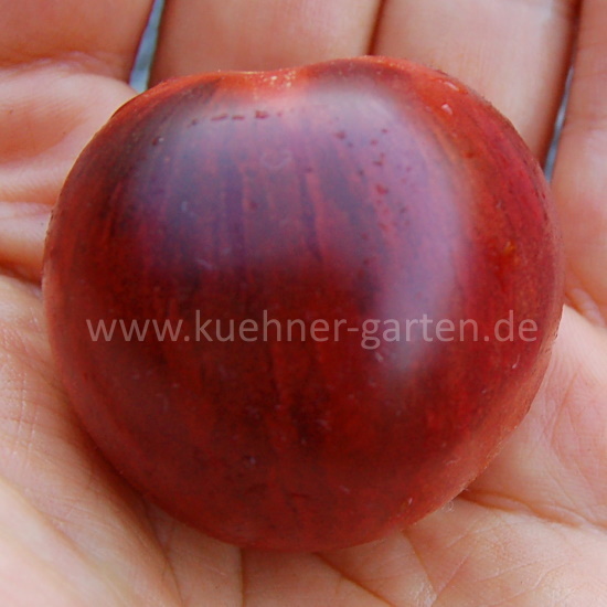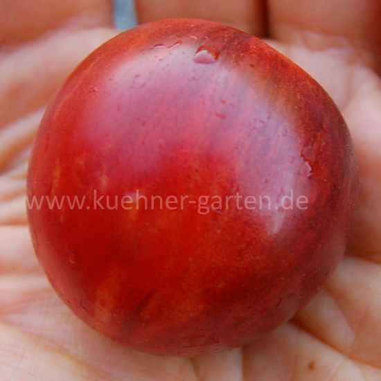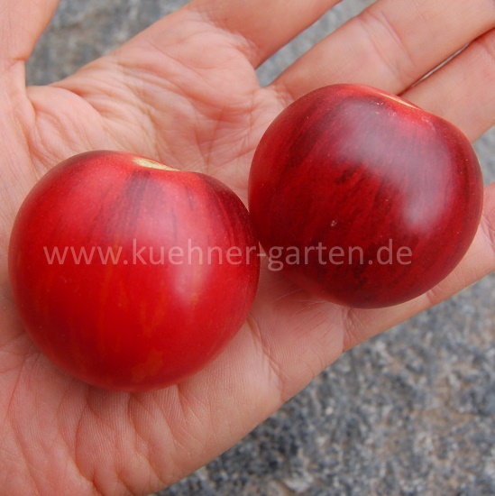 Je nach Sonnenintensität färbt sich die der Sonne zugewandte Tomatenseite lila und die der Sonne abgewandte Tomatenseite rosa.