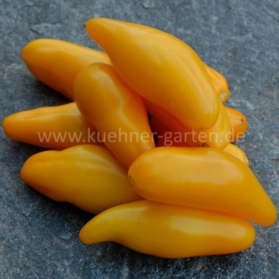 Die "Bananu" ist eine neue elegante Tomatensorte. "Bananu" macht seinem Name alle Ehre und sieht wirklich einer Banane sehr ähnlich. Die länglichen gelben Früchte weisen oft eine leichte Krümmung wie bei einer Banane auf.
