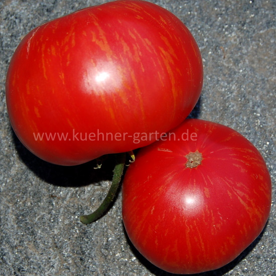 Diese Sorte hat mich einfach begeistert! Die Früchte sind riesig, perfekt geformt, alle gleichmäßig, glatt und glänzend, wunderschön mit feinen Streifen gezeichnet. Bei mir sind sie trotz regelmäßiger Bewässerung nicht aufgeplatzt. Ehrlich gesagt, es war fast schade, sie aufzuschneiden – so viel Freude hat es gemacht, sie einfach nur zu betrachten.