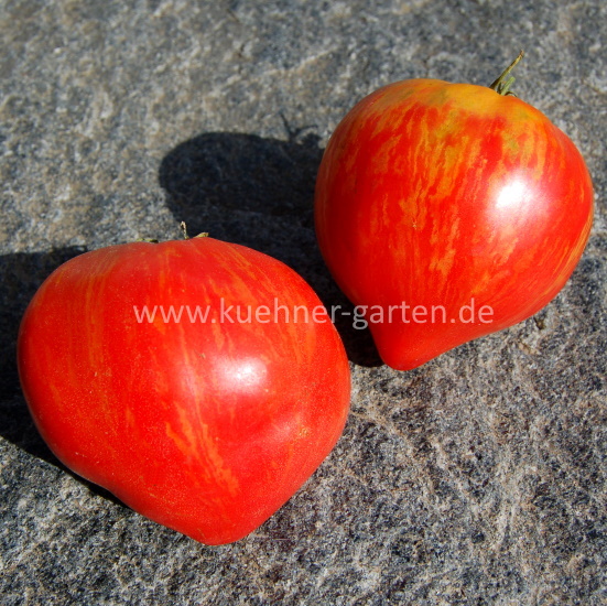 Früchte: mehrfarbig: rosa mit goldenen Streifen; herzförmig, wohlschmeckend, aromatisch