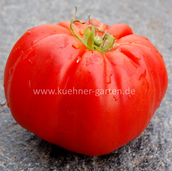 Früchte: rot, flachrund, gerippt, wohlschmeckend und aromatisch