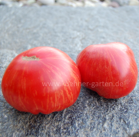 Die "Red Lithium (rosa gestreift)" ist eine Tomatensorte von Marsha Eisenberg aus Florida (USA).