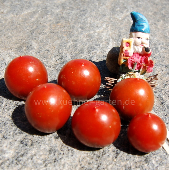 Die "Cherry Black Foxi" ist eine sehr süße, ertragreiche Cherrytomate mit einem hohen Gehalt an Anthocyanen. Die Früchte sind fest und glänzend und können für Schokoladentomaten relativ lange gelagert werden.