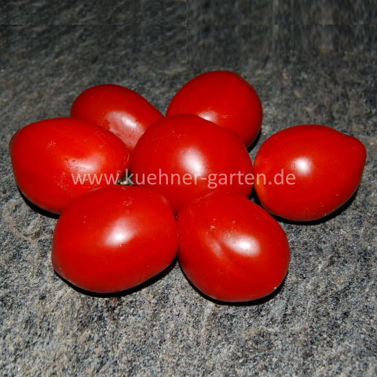 Früchte: rot; in Form einer prallen Pflaume, teils mit Rillen oder herzähnlich; süß, aromatisch, wohlschmeckend, fleischig