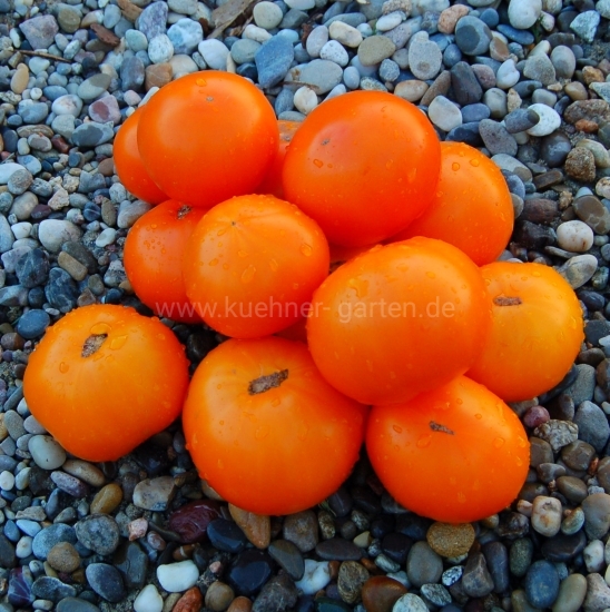 Früchte: gelborange, flachrund, sehr süß, fruchtiger Geschmack, fest, aromatisch