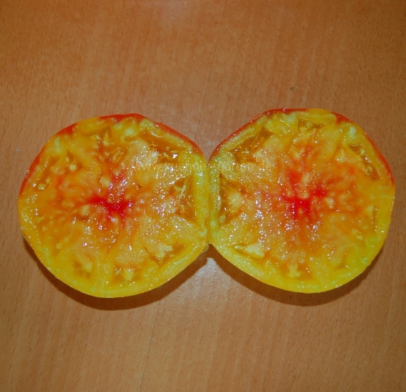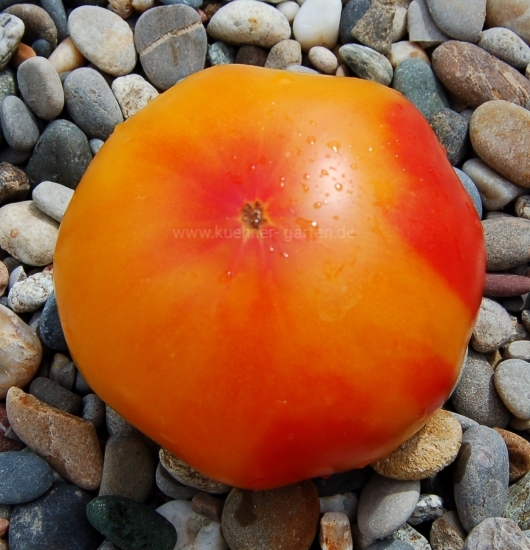 Früchte: mehrfarbig: gelb-orange-rosa, flachrund, süß, fruchtiger Geschmack, aromatisch