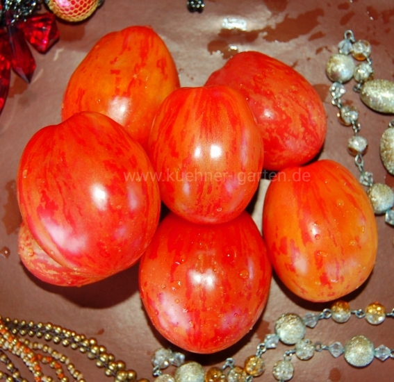Diese Sorte ist durch ihre Fruchtform und die intensive Farbe besonders auffällig.