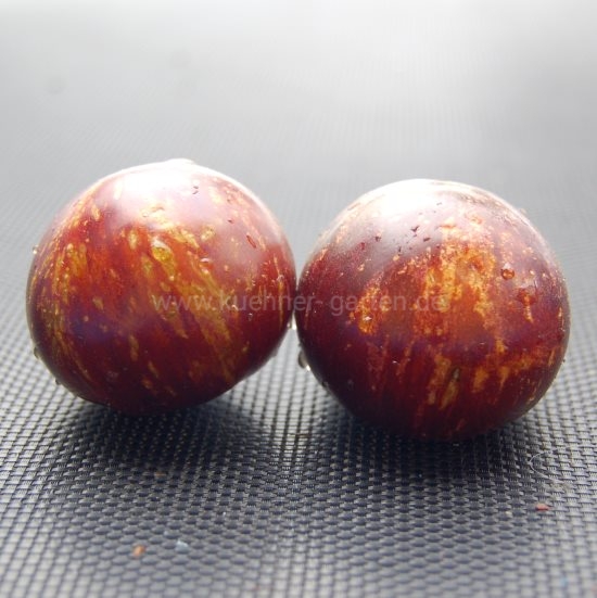 Schon im unreifen Zustand fasziniert sie mit ihrem schönen Farbspiel und den zarten Streifen. Je nach Sonnenintensität färbt sich die der Sonne zugewandten Tomatenseite lila bis schwarz und die der Sonne abgewandte Tomatenseite gelb-orange. Die reifen Früchte weisen zarte Streifen auf, die von schwarz über gelb bis bernsteinfarben reichen.