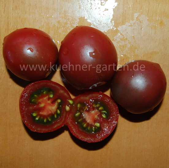 Früchte: purpur-schokoladenfarbig mit dunklen Schultern, herzförmig, sehr süß, fruchtiger Geschmack